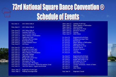 Calendar of upcoming festivals, conventions, Trail in/End/Out and benefit dances for the 73rd NSDC