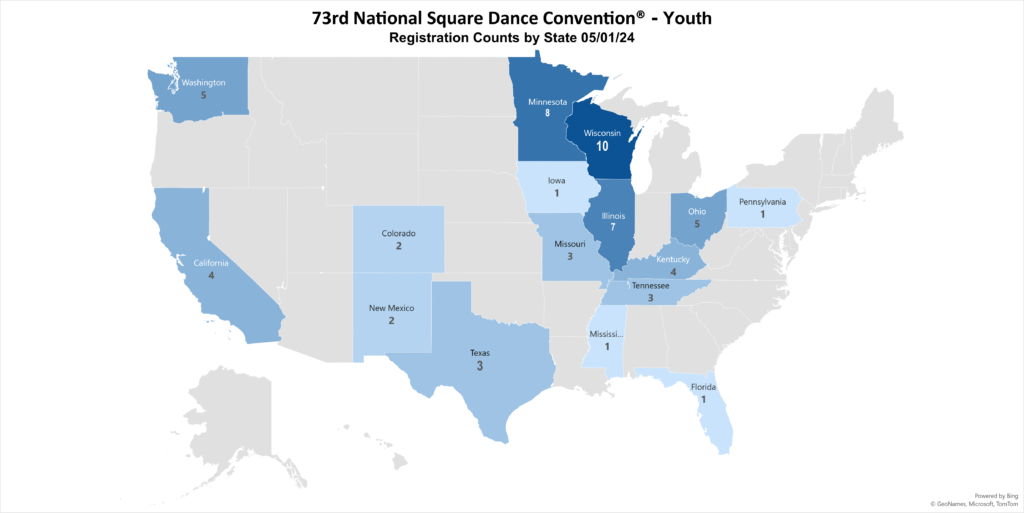 2358 Registered dancers including 7 from Germany, 6 from Australia, 13 from Canada and 1 from the Philippines as of June 21st, 2024.